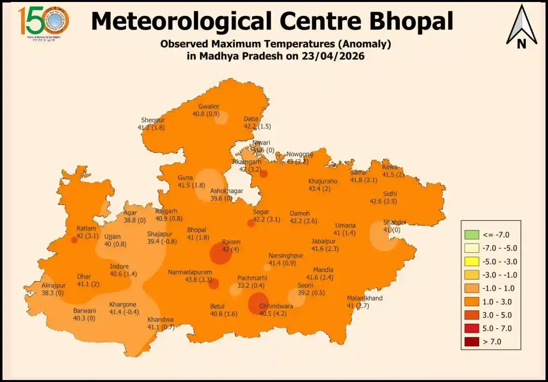 - नर्मदापुरम में पारा 43.8 डिग्री पहुँचा, प्रदेश में सबसे गर्म रहा यह जिला।